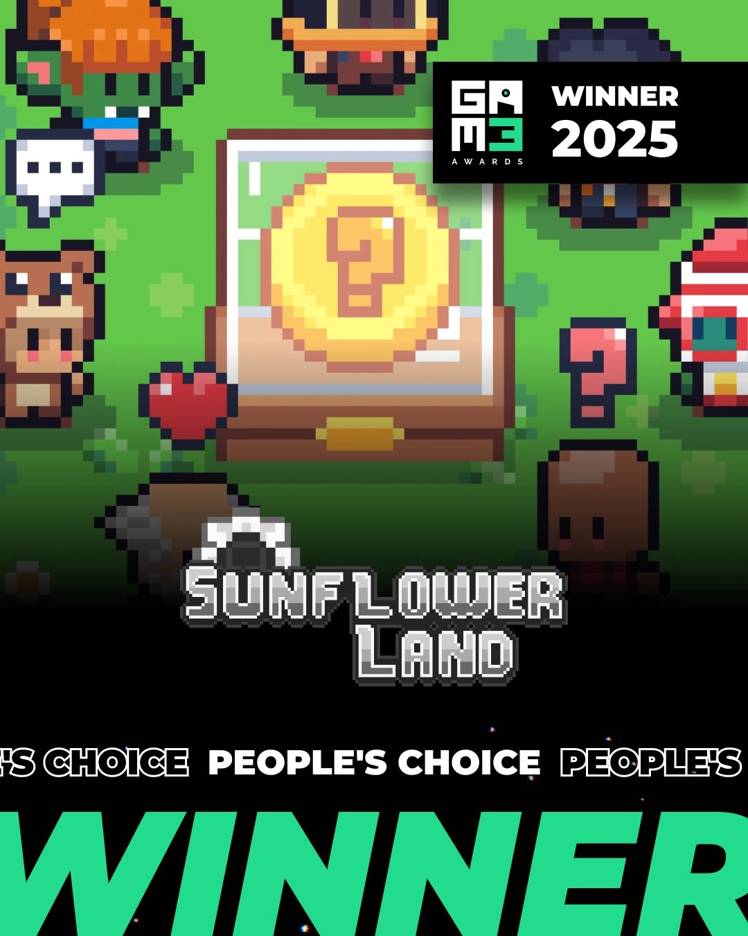 Sunflower Land has officially won the People’s Choice Award at the GAM3 Awards 2025. This category is entirely driven by community voting, making the achievement a strong reflection of the game’s dedicated and passionate player base.